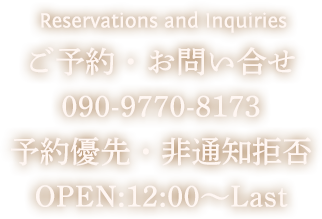 当店は風俗店ではございませんので、スタッフに対しての性的行為の強要はご遠慮ください。また以下の行為が発見した場合に退店をお願いする場合がございますのでご了承願います。