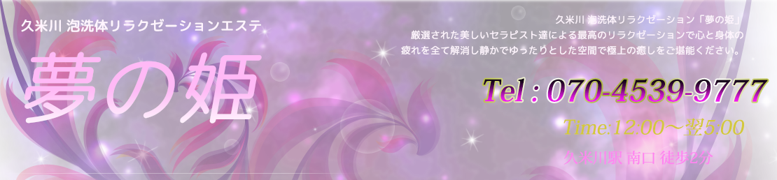 | コメント | アロマエステの腕前良し、可愛いルックス良し、性格良しの三拍子揃い、もちろんお色気もたっぷり♪彼女の持つ女性らしさが更に彼女を魅力的にしております☆ | ||||||